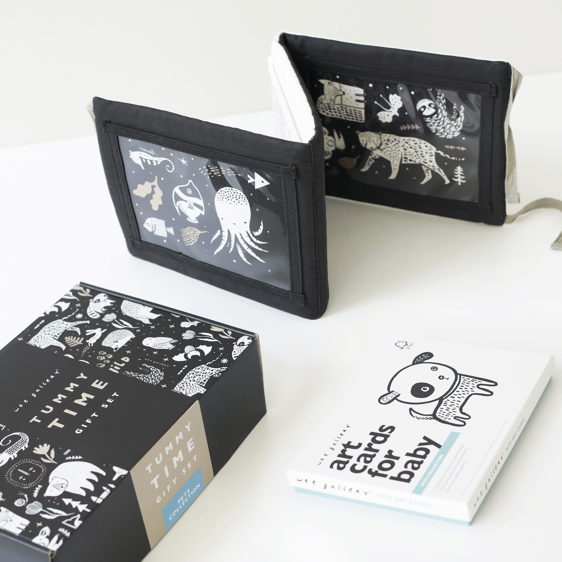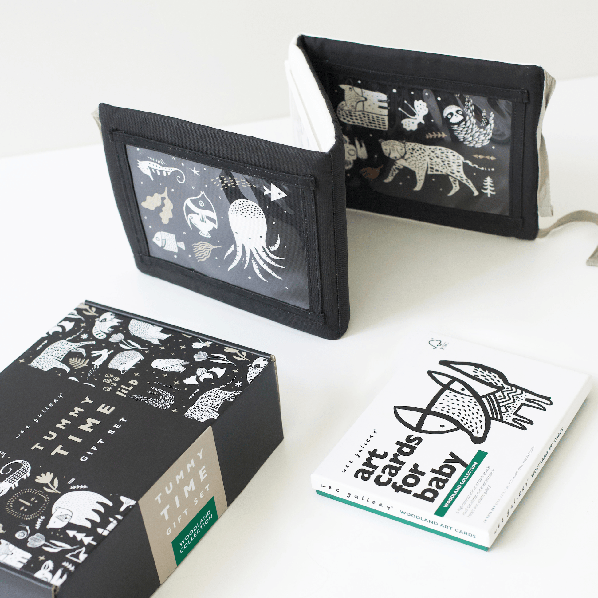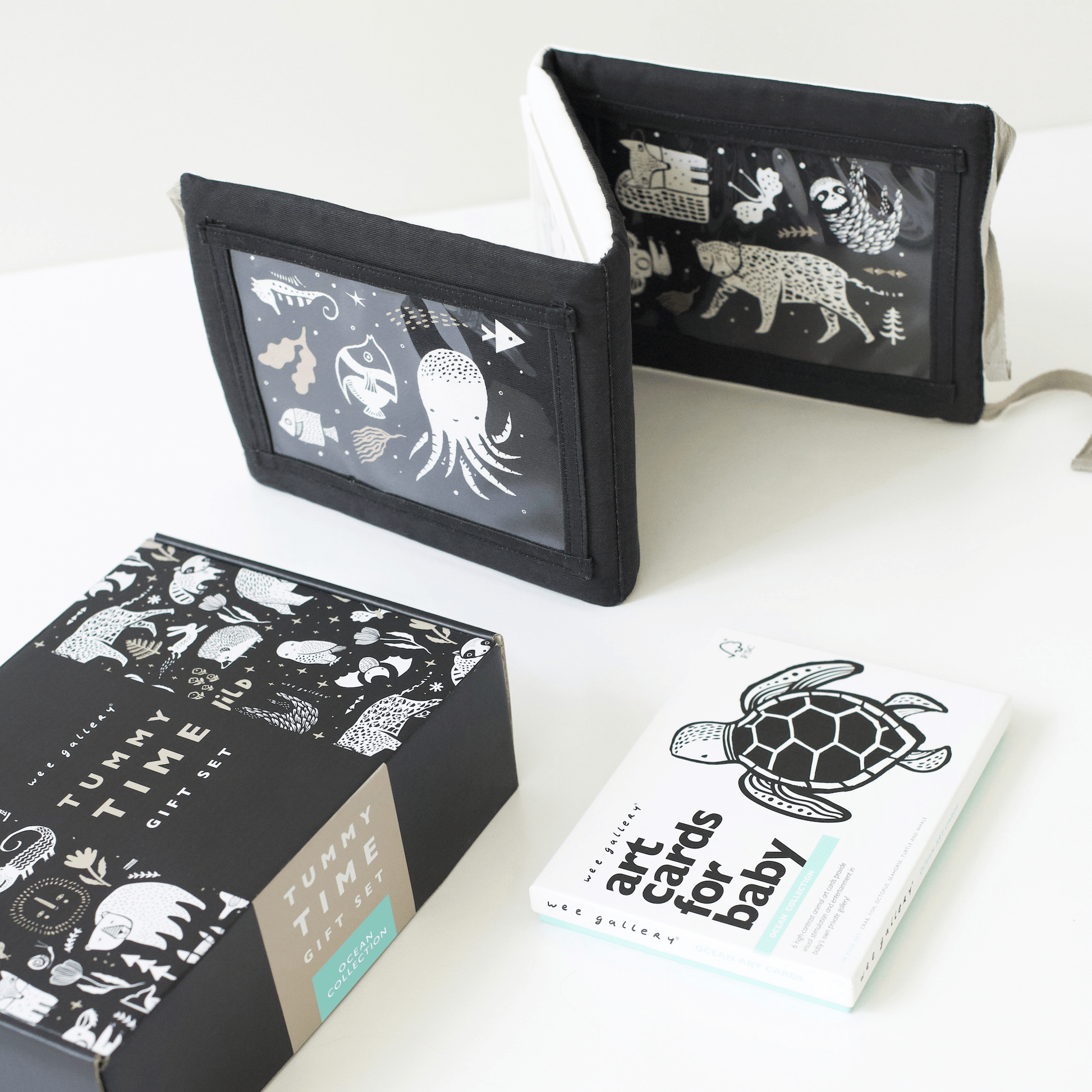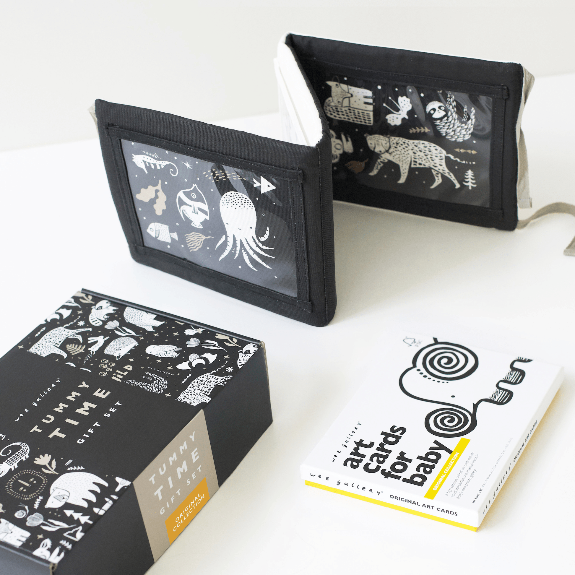 The Tummy Time Gift Set pairs together our best-selling Tummy Time Gallery and your reversible Tummy Time Gallery has many opportunities for stimulation. Illustrated graphics, embroidered features, and pockets for the included Wee Gallery 5x7 inch Art Cards. Select the design of Art Cards that you would like to pair with your Tummy Time Gallery to create your own special gift set.