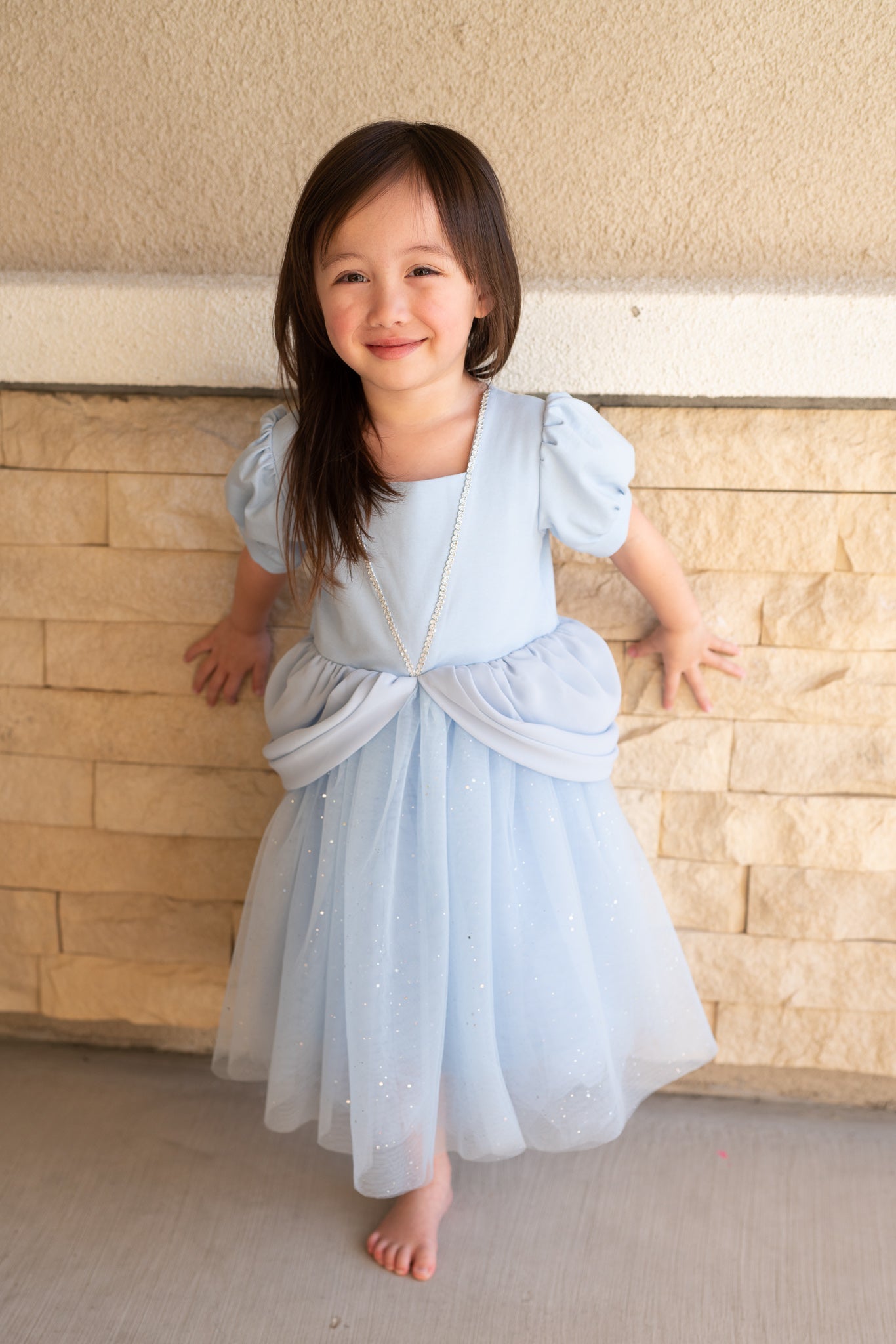 Introducing our enchanting princess dress, designed for little dreamers! The double-layered top is crafted from a soft and stretchy blend of cotton for all-day comfort. The skirt features a cotton lining and layers of airy tulle, adding the perfect touch of elegance and twirl-worthy volume. Perfect for special occasions, dress-up, or everyday magic!